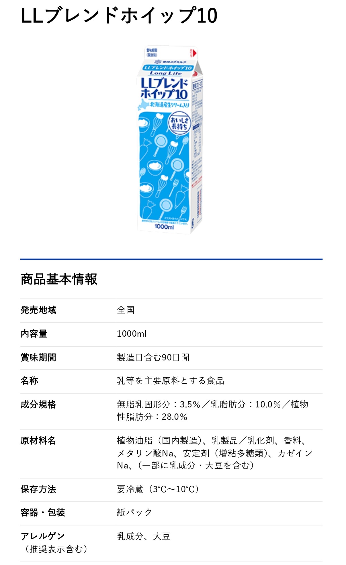 雪印メグミルク LLブレンドホイップ10 1000ml