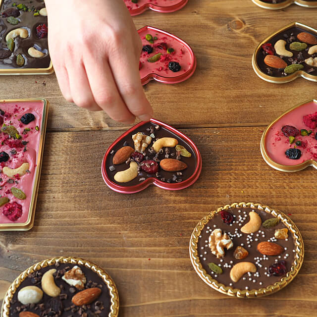 ケーキを引き立てる、高級感のあるゴールドのケーキトレーです。 また、チョコレートを流し入れてナッツやアラザン、ドライフルーツなどお好みでトッピングするとオシャレで簡単にマンディアンを作る事が出来ます。 機能:耐水・耐油性