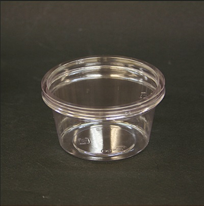 フタ付きの透明プラスチックカップです。惣菜やデザートカップとして、幅広くお使いいただけます。耐熱温度は約60℃ですので、熱のかかる用途へのご使用は避けてください。
