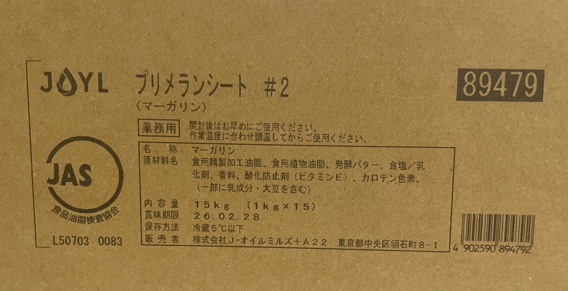 J-オイルミルズ プリメランシート(有塩) 1kg x15枚