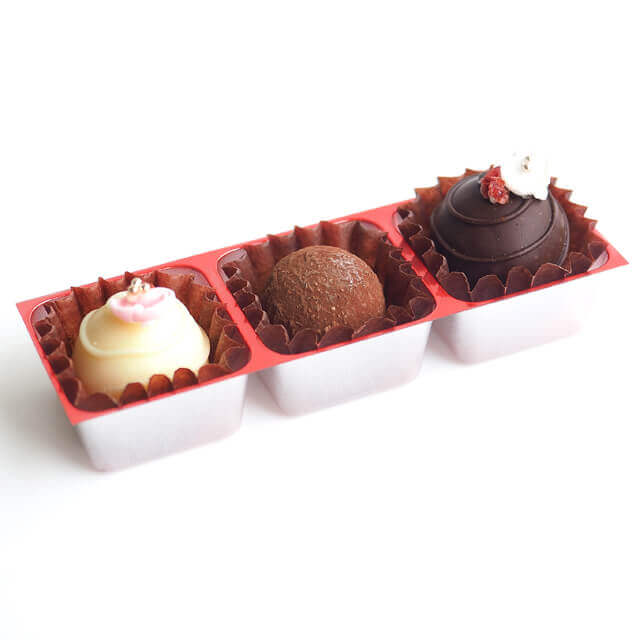 主役のチョコを引き立たせる、シンプルな3個用チョコレートトレーです。