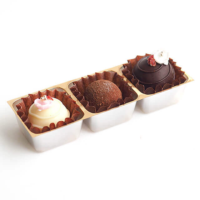 主役のチョコを引き立たせる、シンプルな3個用チョコレートトレーです。