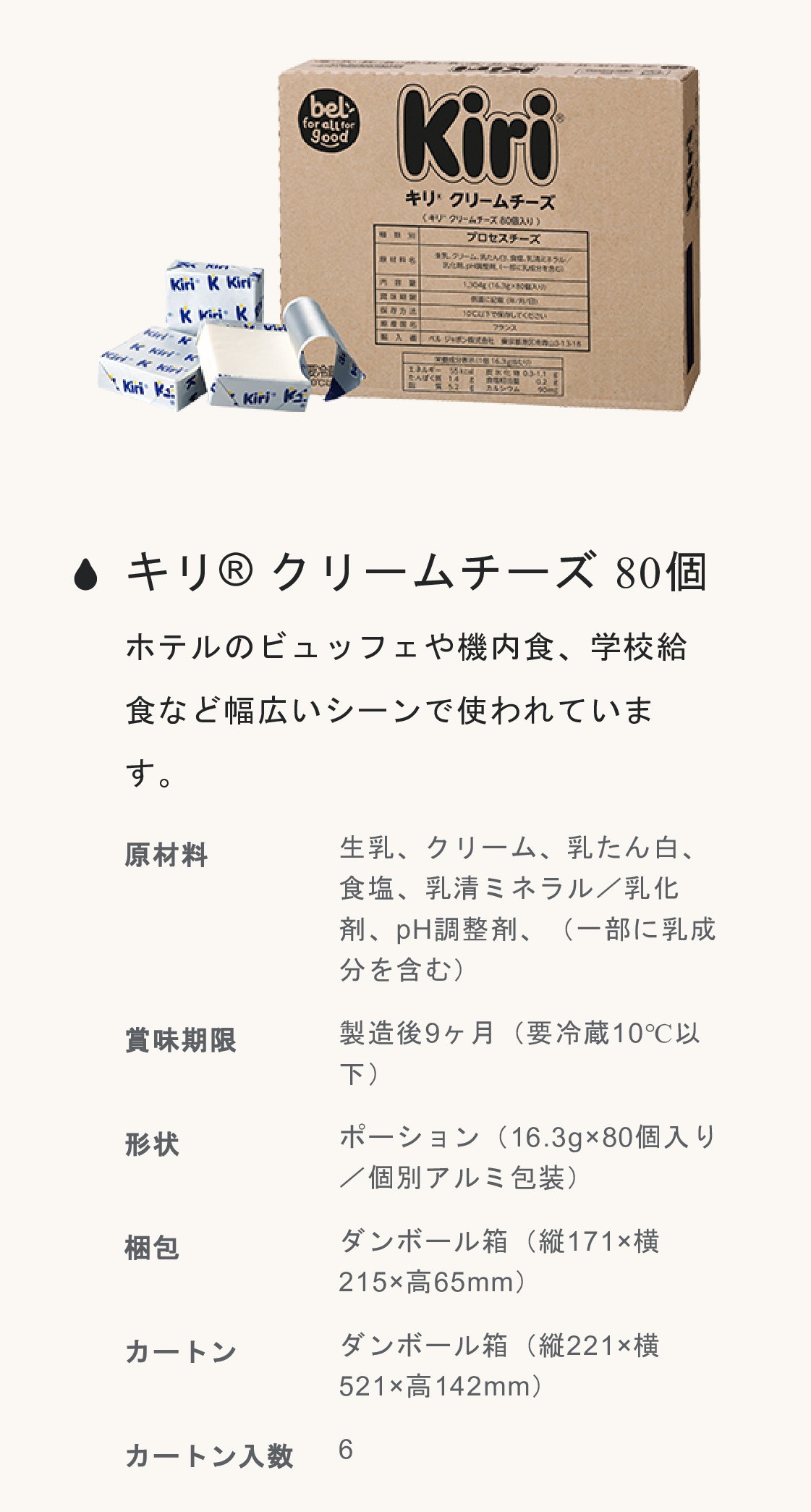 ポーションタイプのクリームチーズ。ホテルのビュッフェや機内食、学校給食など幅広いシーンで使われています。