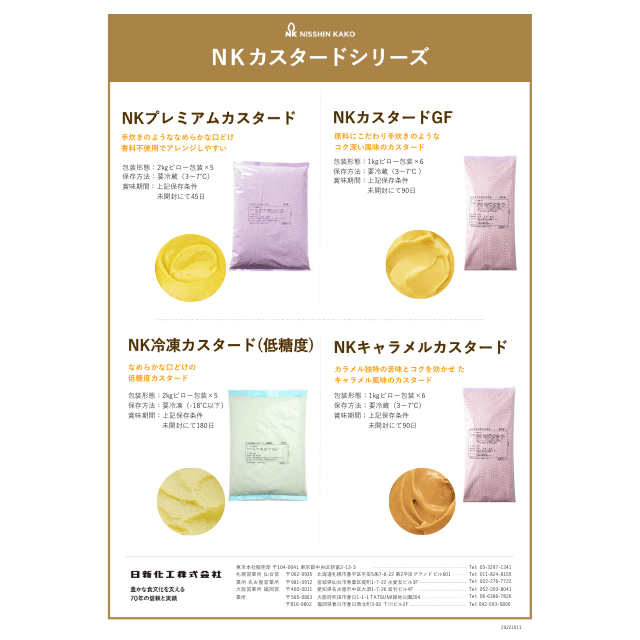 カスタードをはじめとしたケーキや菓子にアクセントを加える素材です。サンド、包餡などさまざまな用途にご使用いただけます。