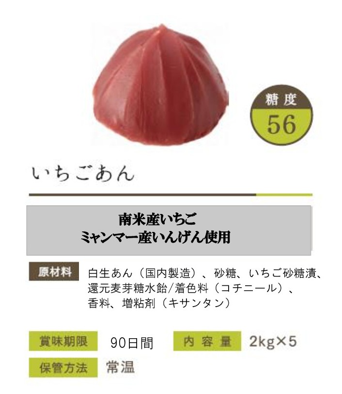 南米産いちご、ミャンマー産いんげん使用。糖度56度です。