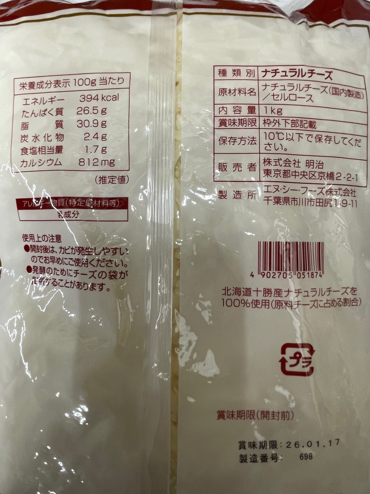 明治 北海道十勝ブレンドシュレッド 1kg