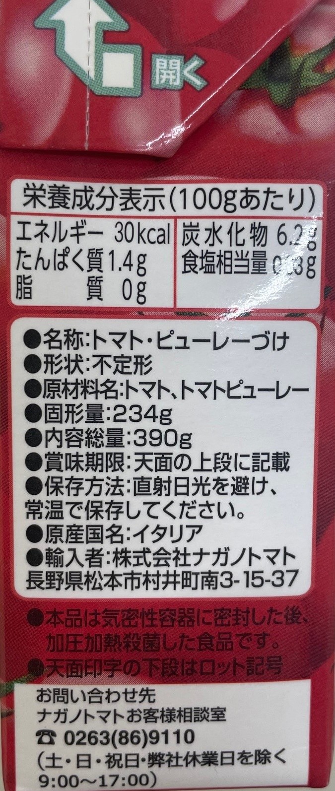 ナガノトマト あらくつぶしたトマトピューレーづけ 390g