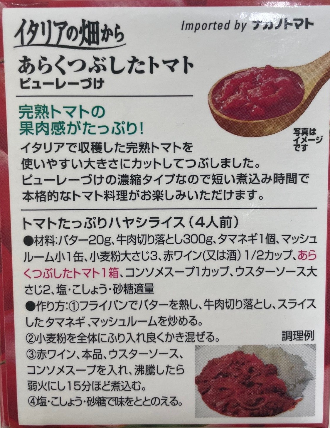 イタリアで収穫した完熟トマトを使いやすい大きさにカットしてつぶしました。ピューレーづけの濃縮タイプなので短い煮込み時間で本格的なトマト料理がお楽しみいただけます。