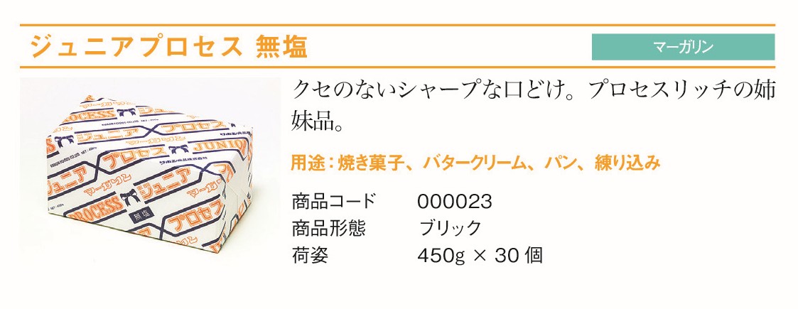 リボン食品 ジュニアプロセス無塩 450gは、クセのないシャープな口どけとなめらかなコクが特徴で、無塩タイプだから素材本来の味を活かした仕上がりに。製パンや製菓、料理など幅広い用途に対応し、450gの使いやすいサイズで家庭から小規模店舗まで重宝されています。リボン食品ならではの安定した品質で、毎日の調理をサポートします。