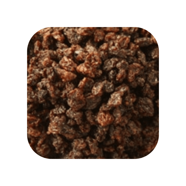 通常のレーズンの1/4程の大きさで、ブラックコリンス種のぶどうをレーズンにしたものです。黒みがかった紫色で強い酸味が特徴です。